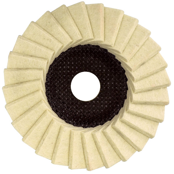 Kulmahiomakoneeseen 115 mm:n huopalaikka peilinkirkkaaseen viimeistelyyn. – Soveltuu mm. ruostumattomille teräksille ja alumiineille, paras lopputulos kiillotusainetta käytettäessä.