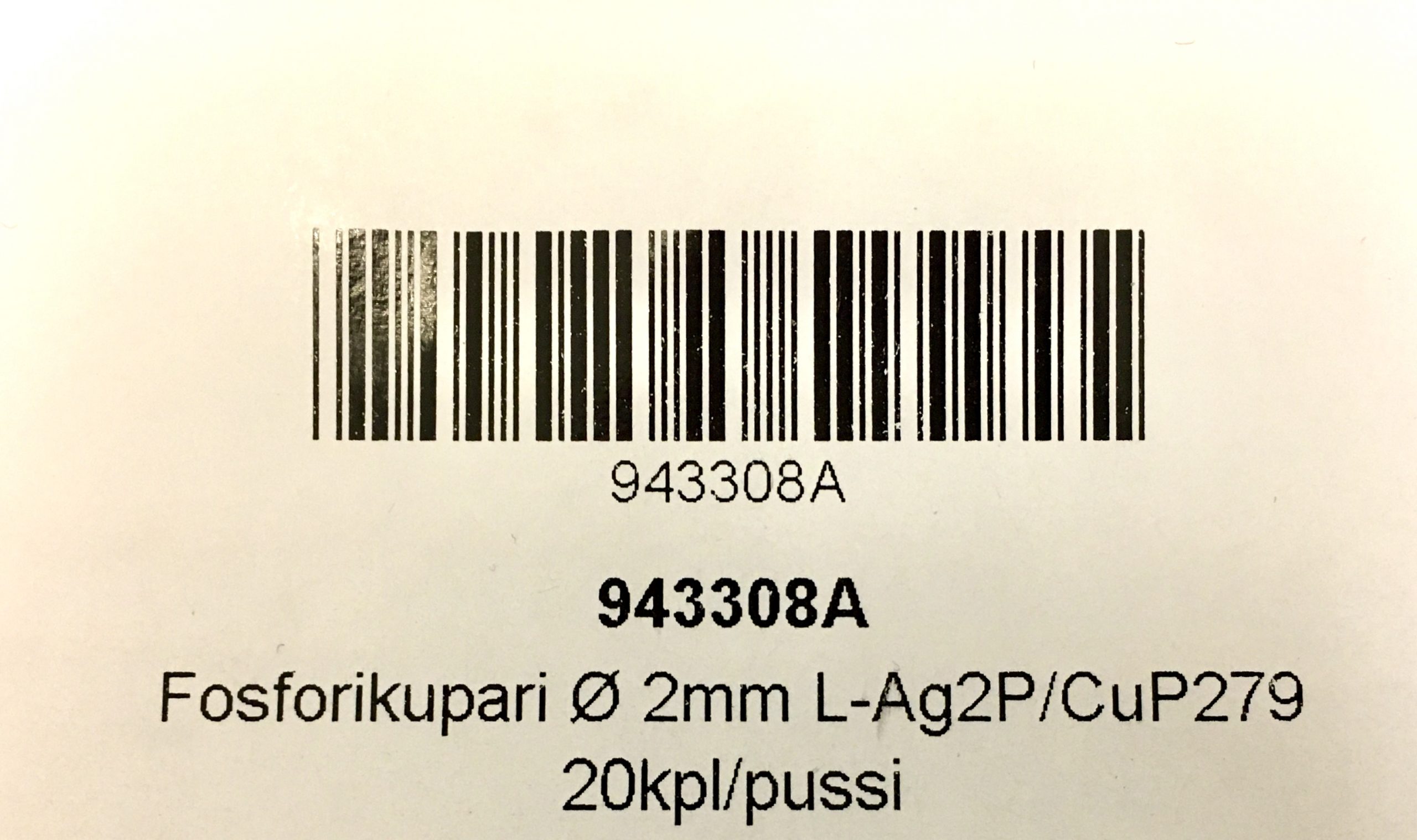 Fosforikuparijuote Ag 2%, 2 mm, 20 kpl / pssKupari-kupari sekä kupari-messinkiliitoksiin.( kupari-messinkiliitokset vaatii juoksutepastan )Isommista eristä pyydä tarjous.
