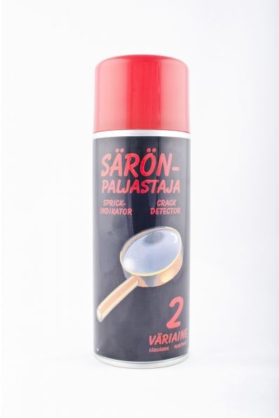 Kolmen pullon setti, joka väriaineensa ansiosta paljastaa säröt tehokkaasti ja nopeasti. 1 puhdistaja, 2 väriaine ja 3 kehite