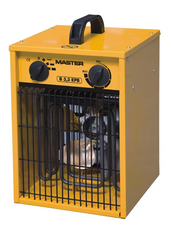 Sähköllä toimiva laadukas 3,3 kW:n Master rakennuslämmitin.Jännite 230 V / 50 Hz Virrankulutus 14.5 A Teho 1,65-3,3 kWIlmamäärä 510 m³/h Termostaatin säätö 5-35 °C Mitat P x L x K 280 x 270 x 420mm Nettopaino 5,1 kg Termostaatti vakiovarusteena