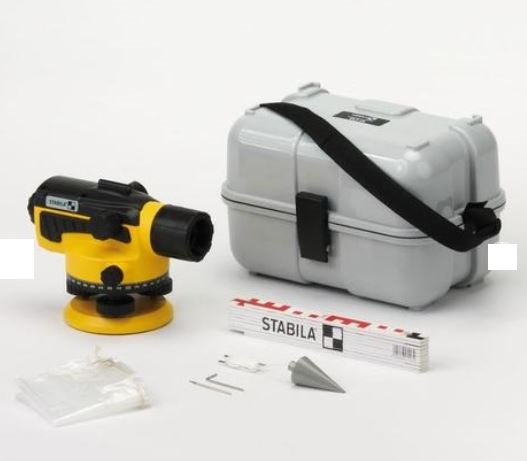 Optinen vaaituslaite ulkokäyttöön. IP54 luokitus.26-kertainen suurennus. Objektiivin aukko 26 mm.Poikkeama < 2mm/km. Vaaitustarkkus 0,1 mm/m.Lyhyin tarkennusetäisyys n. 1m. Kiinityskierre 5/8″.Toimitus sisältää vaaituslaitteen, 2m:n taittomitan kohdistusasteikolla jasäilytyslaukun.