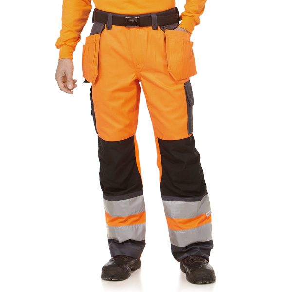 46% Polyesteri, 54% PuuvillaKontrastivärit: 50% Polyesteri, 50% PuuvillaDuratex-vahvikkeet polvissa, vyönsoljissa ja lahkeiden suussaFluoresoiva EN ISO 20471:2013 luokan 2 täyttävä työhousuTilavat kaksiosaiset riipputaskutTilavat takataskutMonilokeroinen läpällinen reisitaskuID-korttitaskun saa esille riipputaskun alta Kolmoistikkauksella vahvistetut saumatLoxy heijastinnauhat lahkeissaKoot: 44-64Värit: keltainen ja oranssi