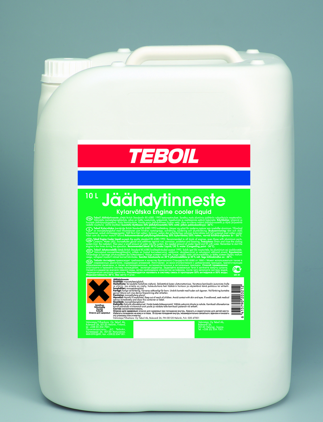 Teboil Jäähdytinneste antaa jäähdytysjärjestelmälle erinomaisen suojan jäätymistä, syöpymistä ja korroosiota vastaan. Tuote ylittää British Standardin BS 6580:1992 laatuvaatimukset.Soveltuu myös alumiinia sisältäviin nykyaikaisiin moottoreihin. Valmistettu monoetyleeniglykolista, johon on lisätty ruostumista, syöpymistä, hapettumista ja vaahtoamista estäviä lisäaineita.Suorituskyky: BS 6580:2010Pakkauskoko: 1l, 3l, 10l, 200l