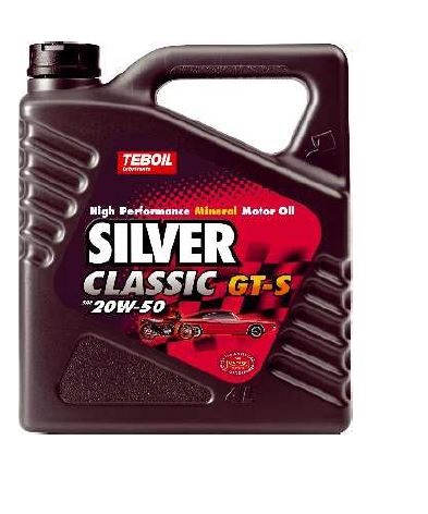 Teboil Silver Classic GT-S 20W-50 -moottoriöljy on suunniteltu erityisesti harrasteajoneuvoille ja autourheilukäyttöön. Öljy on valmistettu korkealaatuisista mineraaliperusöljyistä ja lisäaineistus on suunniteltu perinteistä moottoritekniikkaa varten. Öljy sopii käytettäväksi myös märkäkytkimellä varustetuissa moottoripyörissä. Öljyn vahvuudet tulevat esille myös ilmajäähdytteisissä moottoreissa, joissa lämpötilat voivat olla toisinaan korkeita. Esimerkiksi V-twin-moottoripyörä, kuten Harley-Davidson tai vanha ilmajäähdytteinen Porsche tai Volkswagen Kupla on oivallinen käyttökohde tälle öljylle. Teboil Silver Classic GT-S 20W-50 on hyvä valinta myös historic- ja jokamiehenluokan kilpa-autoihin.API SH, SG/CF; JASO MAPakkauskoko 4 litraa